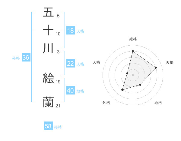 五十川 絵蘭さんを姓名の画数から五運を鑑定
