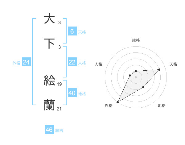 大下 絵蘭さんを姓名の画数から五運を鑑定