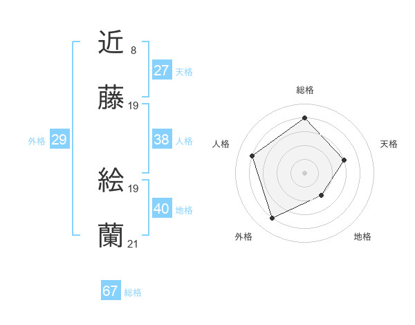 近藤 絵蘭さんの総格は67画の4点!
