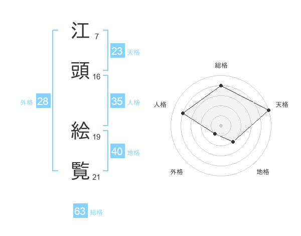 江頭 絵覧さんの総格は63画の4点