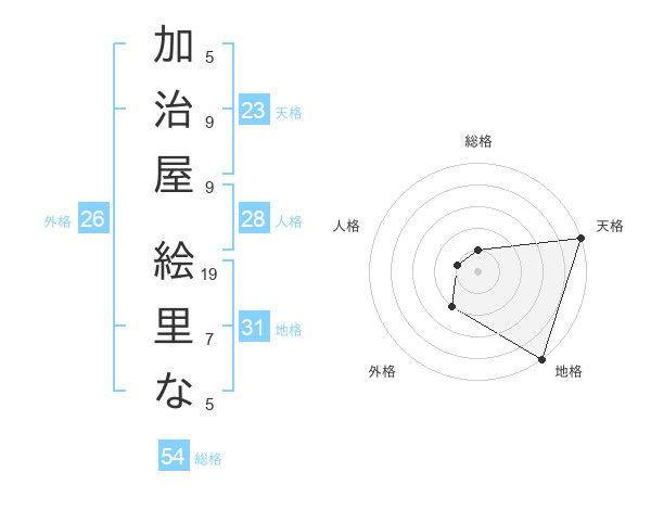 加治屋 絵里なさんを姓名の画数から五運を鑑定