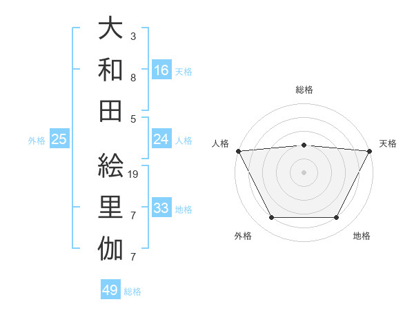 大和田 絵里伽さんを姓名の画数から五運を鑑定
