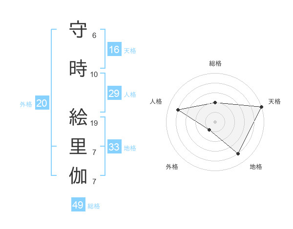 守時 絵里伽さんを姓名の画数から五運を鑑定