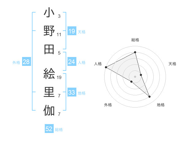 小野田 絵里伽さんを姓名の画数から五運を鑑定