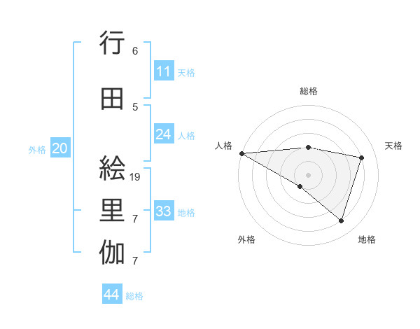 行田 絵里伽さんを姓名の画数から五運を鑑定