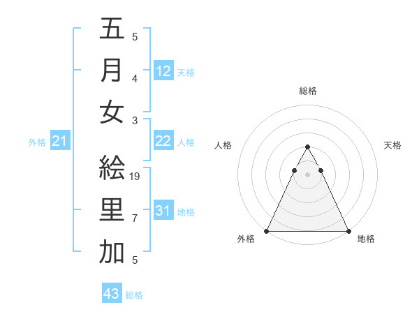 五月女 絵里加さんを姓名の画数から五運を鑑定