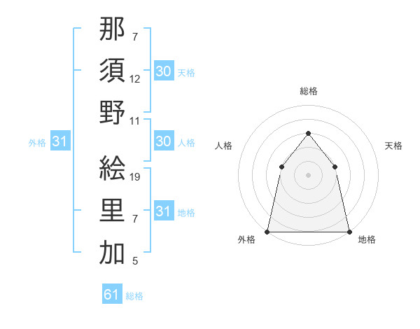 那須野 絵里加さんを姓名の画数から五運を鑑定