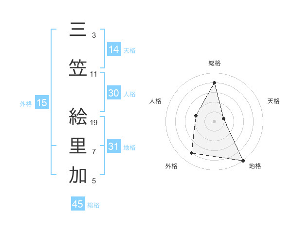 三笠 絵里加さんを姓名の画数から五運を鑑定