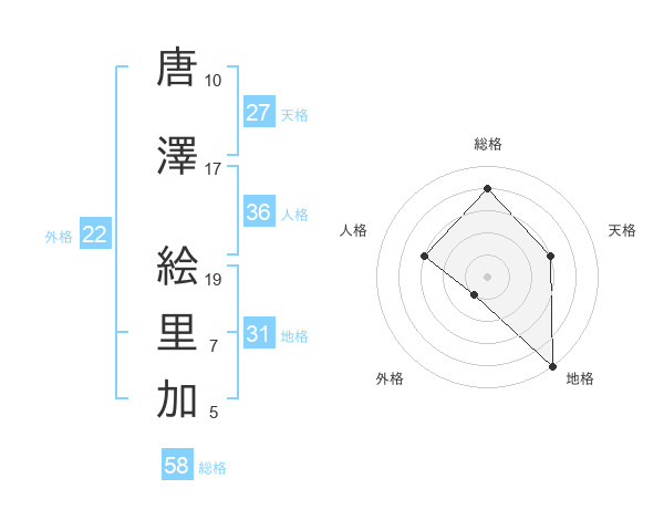 唐澤 絵里加さんの総格は58画の4点!