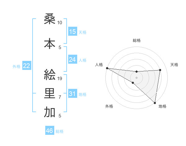 桑本 絵里加さんを姓名の画数から五運を鑑定