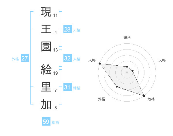 現王園 絵里加さんの総格は59画の1点!