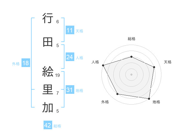 行田 絵里加さんを姓名の画数から五運を鑑定