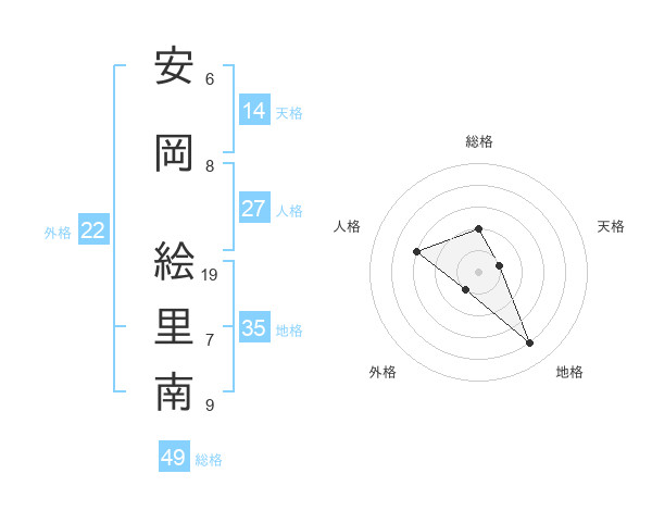安岡 絵里南さんを姓名の画数から五運を鑑定