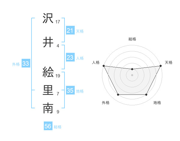 沢井 絵里南さんを姓名の画数から五運を鑑定