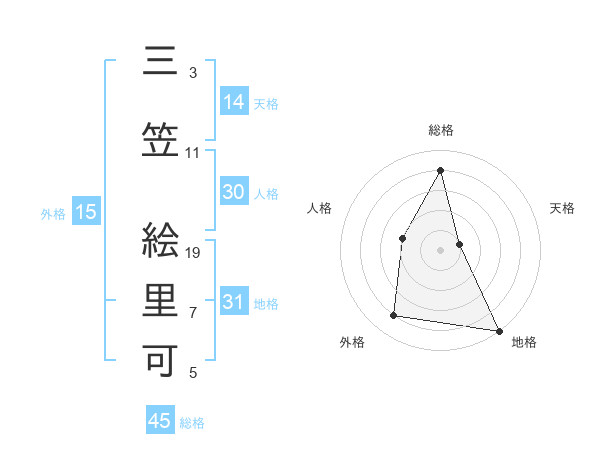 三笠 絵里可さんを姓名の画数から五運を鑑定