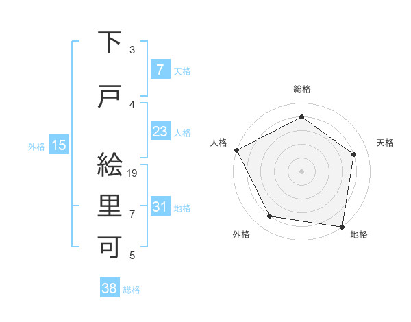 下戸 絵里可さんを姓名の画数から五運を鑑定