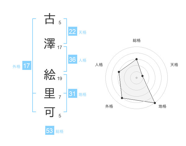 古澤 絵里可さんの総格は53画の3点!