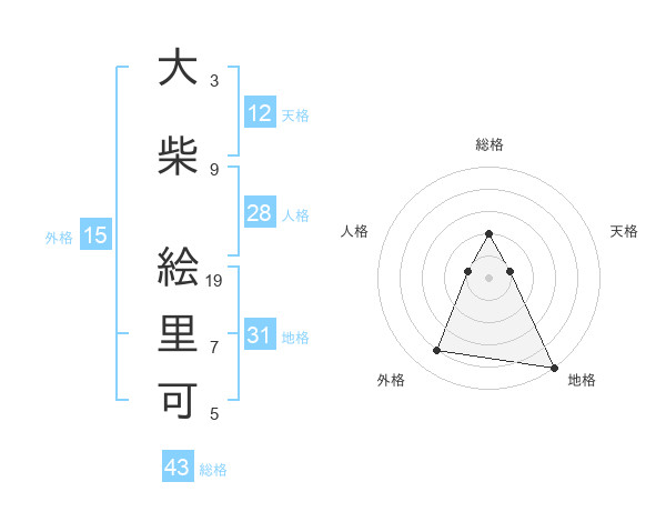 大柴 絵里可さんを姓名の画数から五運を鑑定