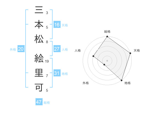 三本松 絵里可さんの総格は47画の5点!