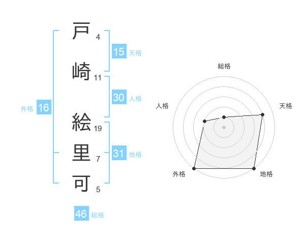 戸崎 絵里可さんを姓名の画数から五運を鑑定