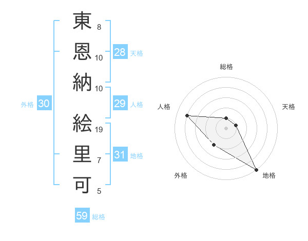 東恩納 絵里可さんの総格は59画の1点!
