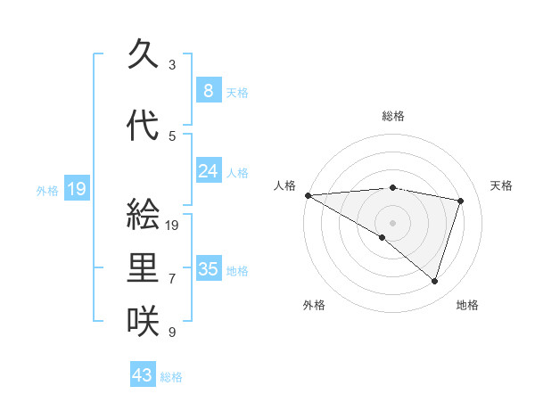 久代 絵里咲さんの総格は43画の2点!