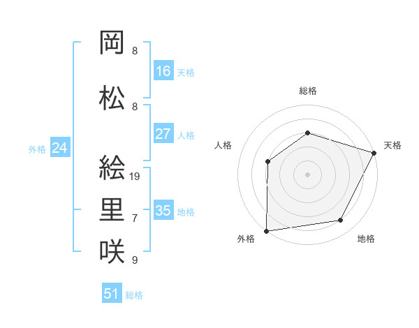 岡松 絵里咲さんを姓名の画数から五運を鑑定
