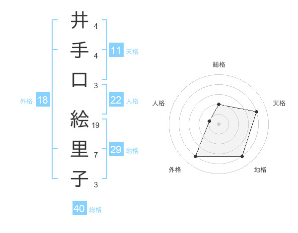 井手口 絵里子さんの総格は40画の2点!