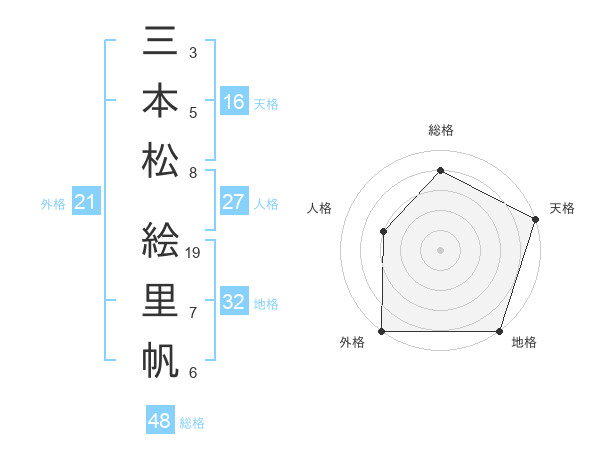 三本松 絵里帆さんを姓名の画数から五運を鑑定