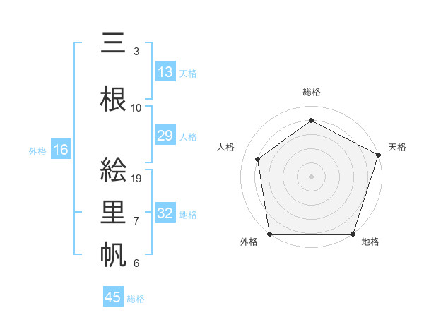 三根 絵里帆さんを姓名の画数から五運を鑑定