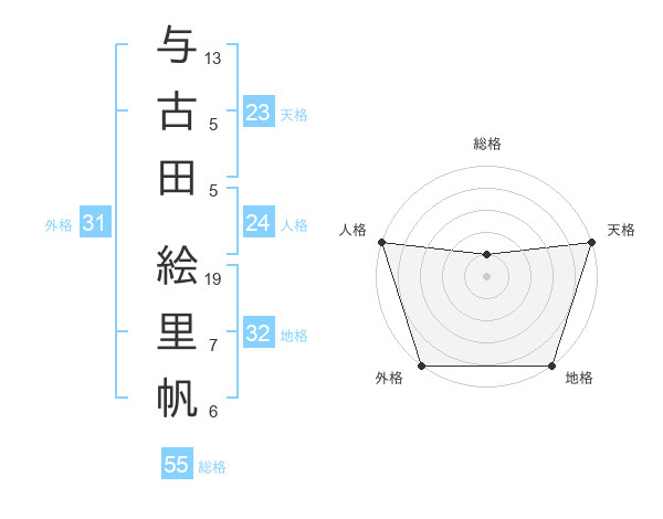 与古田 絵里帆さんの天格は23画の5点!