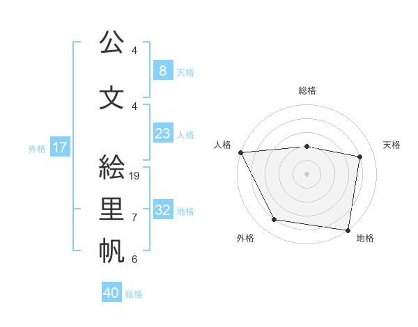 公文 絵里帆さんを姓名の画数から五運を鑑定