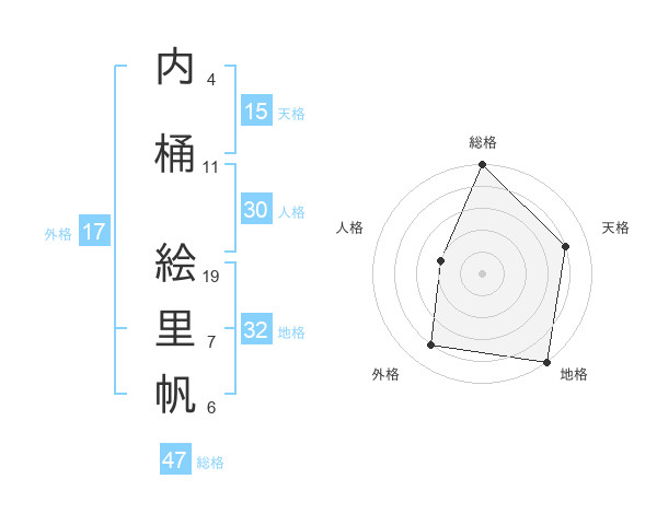 内桶 絵里帆さんを姓名の画数から五運を鑑定