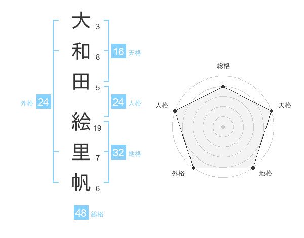 大和田 絵里帆さんを姓名の画数から五運を鑑定
