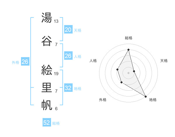 湯谷 絵里帆さんを姓名の画数から五運を鑑定