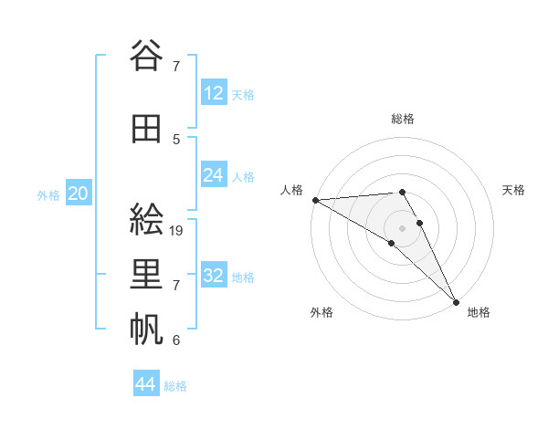 谷田 絵里帆さんを姓名の画数から五運を鑑定