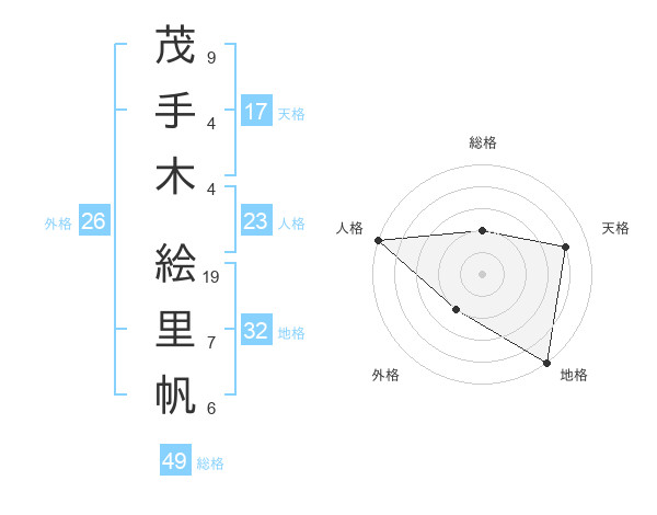 茂手木 絵里帆さんを姓名の画数から五運を鑑定