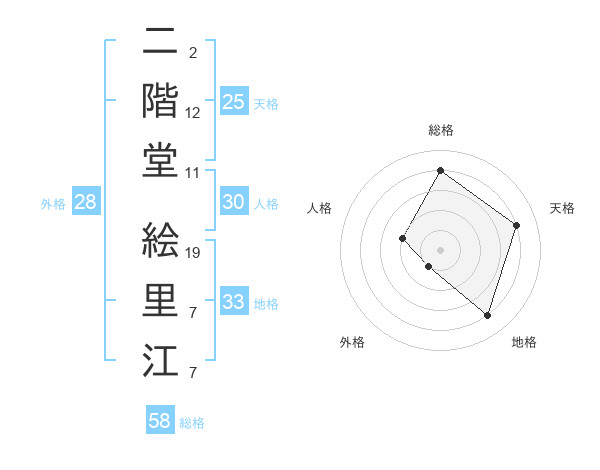 二階堂 絵里江さんを姓名の画数から五運を鑑定