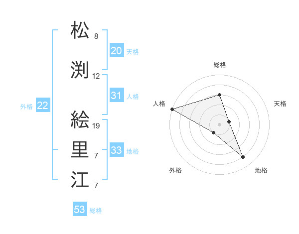 松渕 絵里江さんを姓名の画数から五運を鑑定