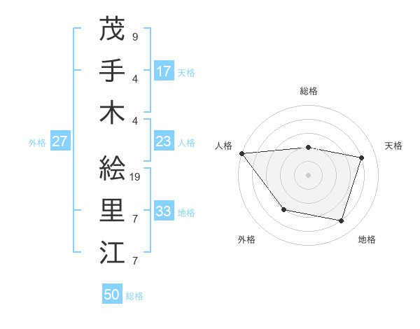 茂手木 絵里江さんを姓名の画数から五運を鑑定