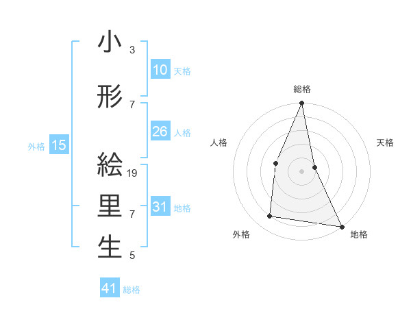 小形 絵里生さんを姓名の画数から五運を鑑定