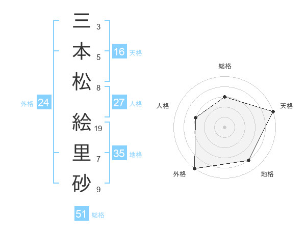 三本松 絵里砂さんを姓名の画数から五運を鑑定