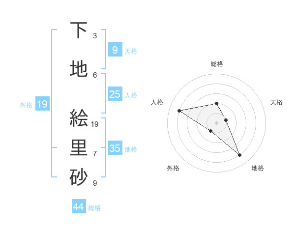 下地 絵里砂さんを姓名の画数から五運を鑑定