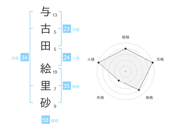 与古田 絵里砂さんの天格は23画の5点