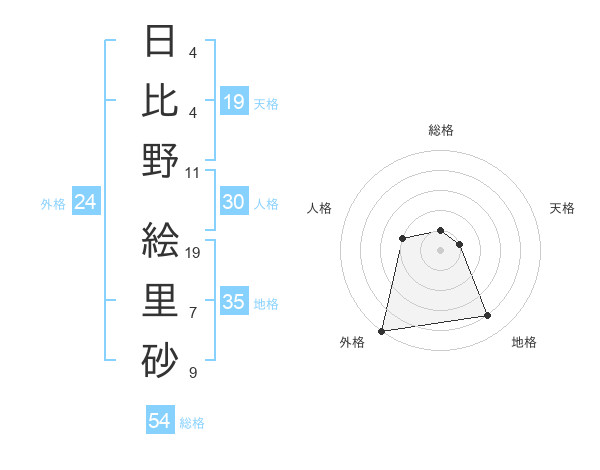 日比野 絵里砂さんを姓名の画数から五運を鑑定