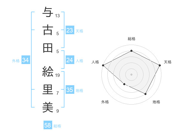 与古田 絵里美さんを姓名の画数から五運を鑑定