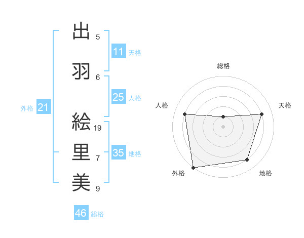 出羽 絵里美さんを姓名の画数から五運を鑑定