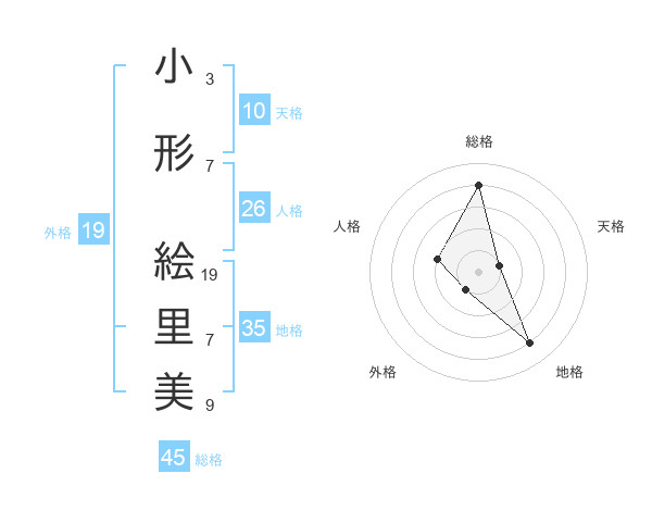 小形 絵里美さんの総格は45画の4点!