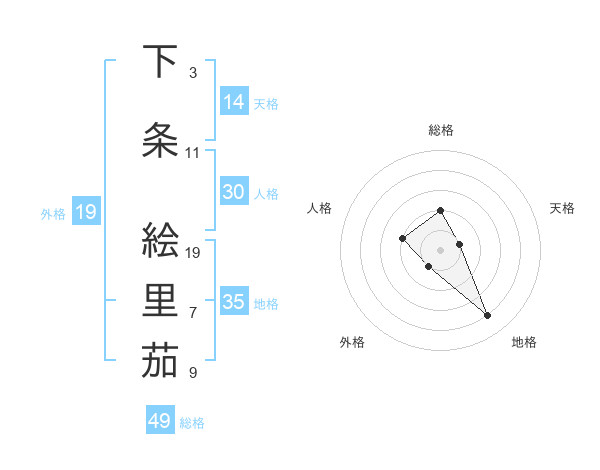 下条 絵里茄さんの総格は49画の2点!