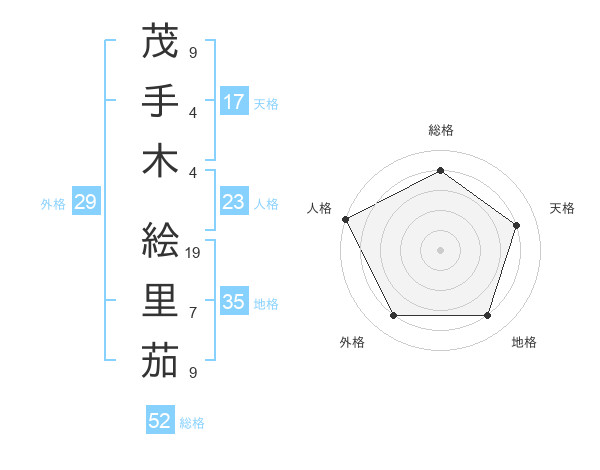 茂手木 絵里茄さんを姓名の画数から五運を鑑定